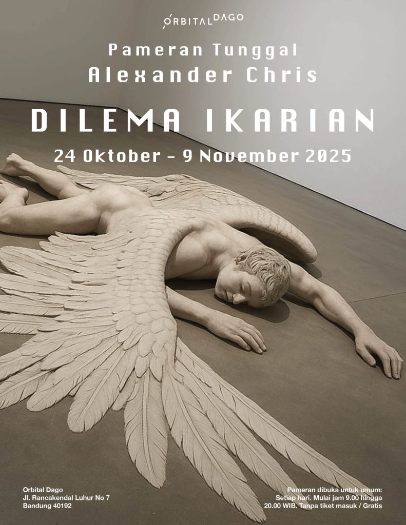 Alexander Chris kali ini menampilkan karya lukisan dan patung, yang semuanya bertolak dari tokoh Ikarus. Inspirasi dari kisah Ikarus, saking menyebarnya, bahkan diserap menjadi kata sifat “ikarian” (berwatak seperti Ikarus). Lukisan-lukisan Chris menggambarkan potret sejumlah orang yang semuanya dikenal pribadi oleh Chris. Chris melukis potret mereka, karena tertarik pada kisah hidupnya. Menurut Chris, masing-masing orang itu punya ambisi, namun karena sejumlah alasan, orang-orang itu mengesampingkan ambisinya. Orang-orang yang digambarkan Chris adalah orang biasa—karena memang kebanyakan orang tidak mewujudkan ambisinya.
