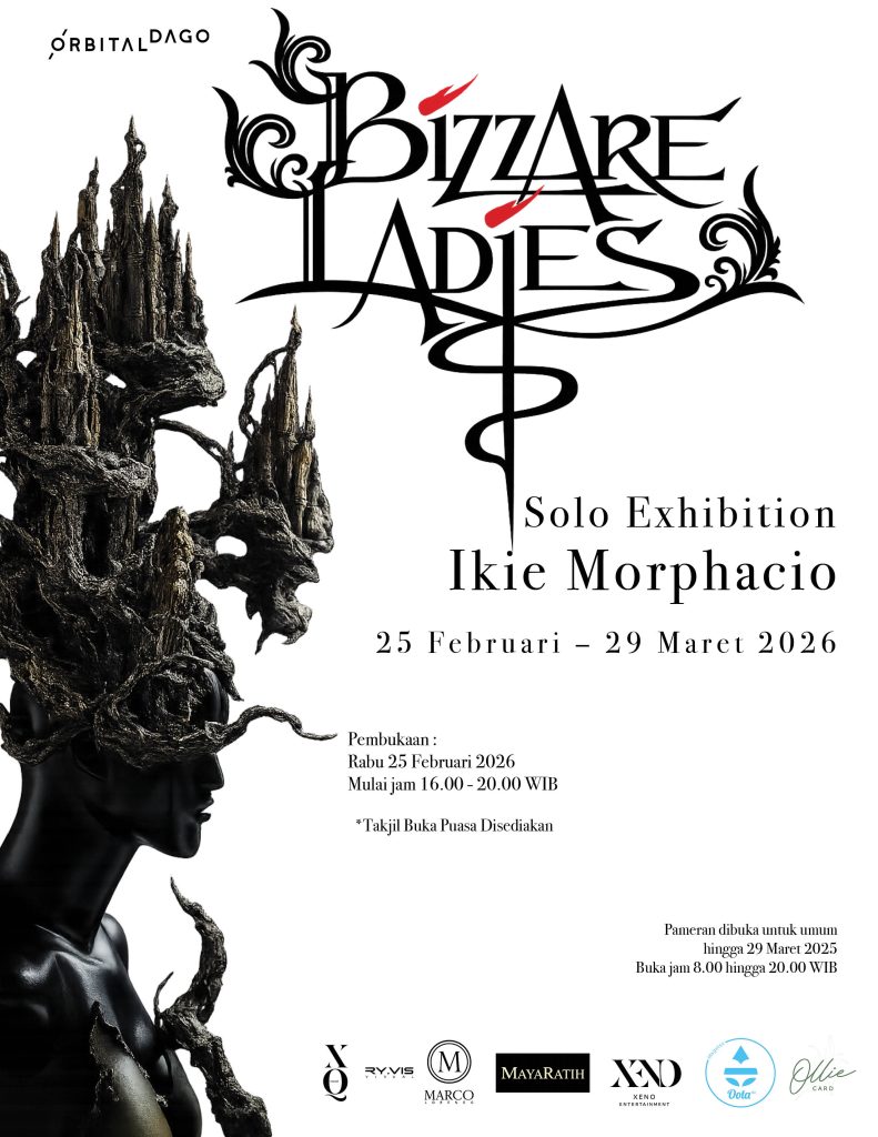 Pameran Tunggal Ikie Morphacio berjudul Bizzare Ladies menampilkan karya yang terdiri dari gambar – gambar dan rangkaian instalasi patung dada atau tubuh sosok-sosok perempuan berpakaian aneh, dengan garapan aksesorisnya : mahkota , kalung hingga gaun atau kostum dengan beragam ornamen. Sekilas instalasi patung itu seperti dipengaruhi oleh gaya gothic dan juga memiliki elemen baroque Eropa, bahkan bisa dibilang merupakan perpaduan keduanya. Seperti kemunculan bentuk menara runcing,  arsitektur katedral dengan nuansa gelap, misterius, dan monumental. Detail seperti reruntuhan kota, tekstur organik menyerupai akar pohon yang membelit bangunan dengan siluet dramatis dan kontras cahaya yang kuat.